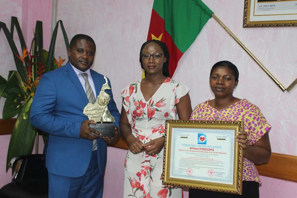 Le Grand Prix de l'Engagement Patriotique et de l'Unité Nationale a été décerné à Barbara ELEMVA-AMANA, Chef de la Brigade Nationale des Contrôles et de la Répression des Fraudes par la Fondation Cœurs des Anges. La remise du Diplôme et du trophée a eu lieu ce 11 septembre 2020 dans la Salle des Conférences de l'Immeuble Rose.